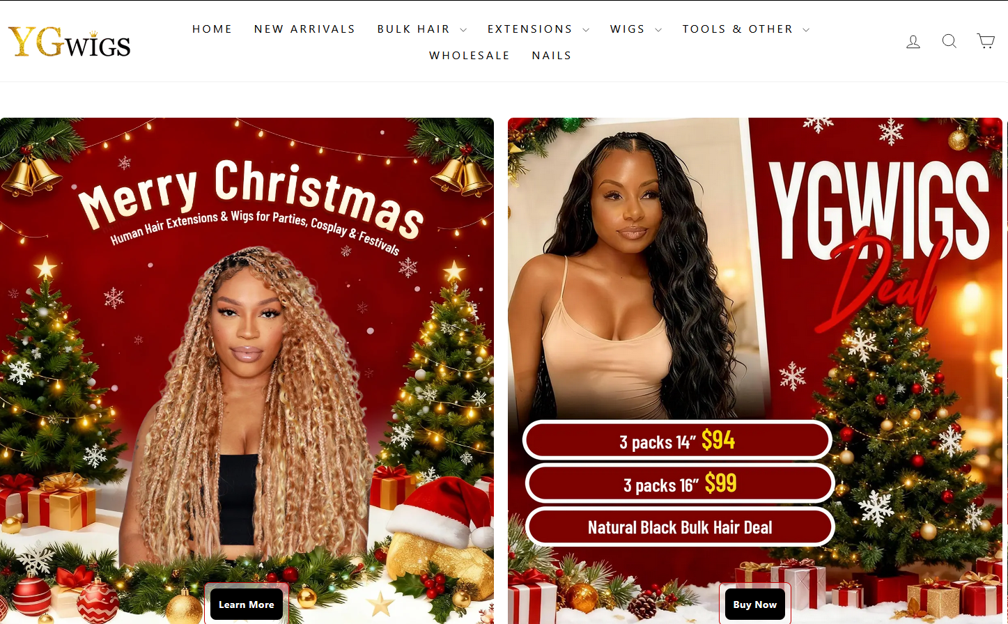 这个独立站(www.ygwigs.com)是一个专门售卖假发的独立站,这个独立站已经上线运营超过7年,每年营收超过千万美元